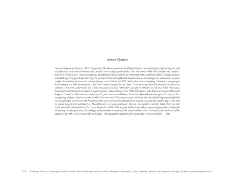 1981 • College Thesis • Fitting test for World Speed Record vehicle with Olympic champion, Eric Heiden, inside JFK airport lounge (before security protocols)