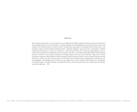 1975-1982 • Custom cars designed and built by W Vehicle Design (later to be known as DWV) in Westport, Connecticut. Photo of David with his first Porsche - a 1966 912