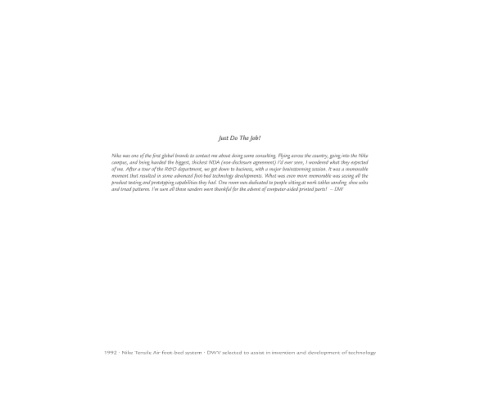 1992 • Nike Tensile Air foot-bed system • DWV selected to assist in invention and development of technology