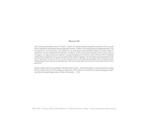 1989-1992 • Pheasant Hill by David Wiener • for Beymen Group • Turkey • Luxury sportswear and accessories