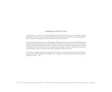 2007 • Ferrari Art.Engine Home Audio System • Assorted photos of production, photo-shoots and article in Japanese luxury magazine