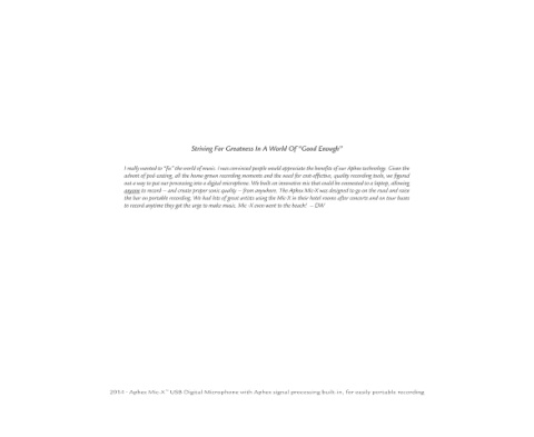 2014 • Aphex Mic-X USB Digital Microphone with Aphex signal processing built-in, for easily portable recording