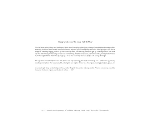 The “Quattro” we created for Clearsounds utilized neck-loop technology, Bluetooth connectivity and a combination of features,
