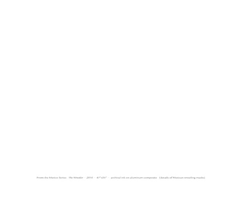 From the Mexico Series: The Wrestler • 2016 • 47”x35” • archival ink on aluminum composite (details of Mexican wrestling masks)